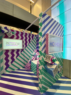 The next redesign was a Christmas display. This saw us clad the entire structure and vinyl each wall in a unique ‘Three’ Christmas design complete with over 70 Christmas presents, secret QR code prizes and a photo op surrounded by more presents.